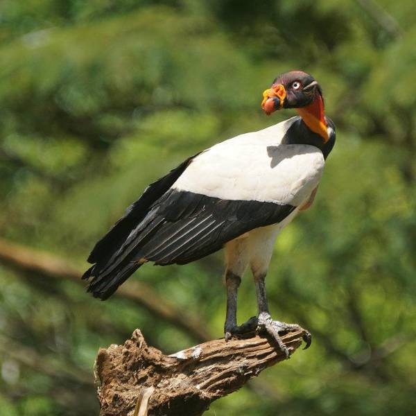 Los árboles de tamburo, con sus flores amarillas, se destacan sobre el paisaje verde. Atraen a uno de los pájaros más grandes del mundo: el gallinazo rey.