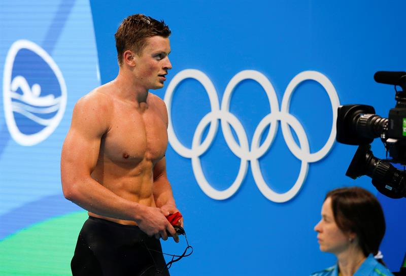 El británico, que de niño tenía fobia al agua, completó los 100m pecho en 57.55 segundos.