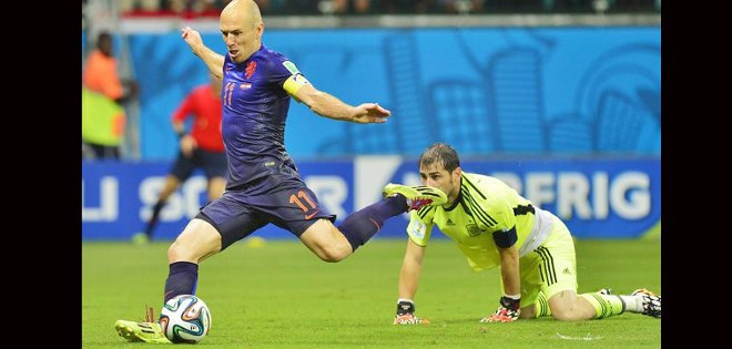 Pero los holandeses tenían sed de más y Robben con una gran acción individual dejó mal parada a la defensa española a los 79 minutos y definió de manera impecable.