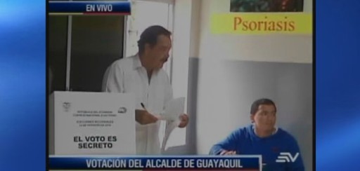 El alcalde de Guayaquil y candidato a la reelección por la alianza Partido Social Cristiano y Madera de Guerrero, Jaime Nebot, ejerció su derecho al sufragio en la Universidad Agraria de la ciudad, su recinto electoral.