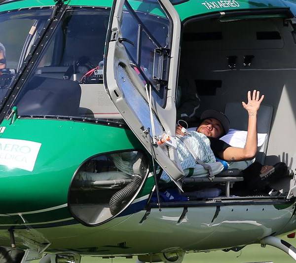 El helicóptero se llevó al crack desde las instalaciones de la Granja de Comary, que tiene fracturada una vértebra fruto del rodillazo de Zúñiga recibido en la espalda en el Brasil-Colombia de los cuartos del Mundial.