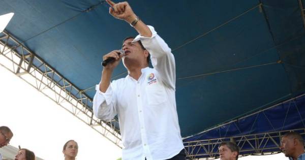 Rafael Correa llegó a la Plaza Cívica de Esmeraldas para el acto que su movimiento Alianza PIS organizó por el Día del Trabajo. Foto: Presidencia de la República.