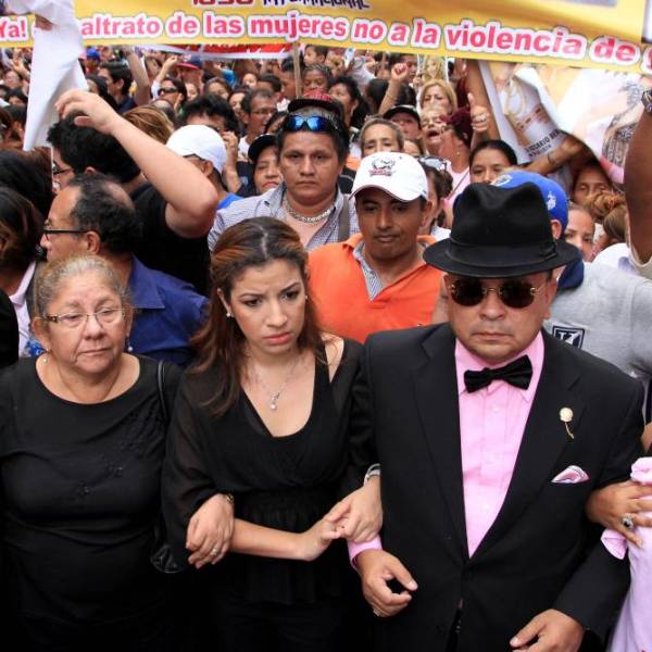 GUAYAQUIL.- En la imagen (c) está Samantha Grey hija de Sharon junto a su abogado defensor. Foto: API, Archivo.