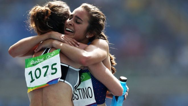 Esas fueron las palabras de aliento de la atleta neozelandesa Nikki Hamblin a la estadounidense Abbey D'Agostino, en la pista este martes durante la carrera de 5.000 metros en los Juegos Olímpicos de Río 2016.