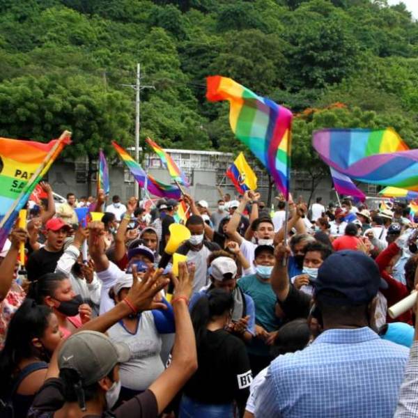Decenas de simpatizantes de la dirigencia y militancia de Pachakutik, respondieron al llamado hecho para movilizarse y defender los votos que, según dicen, son la voluntad popular y la democracia, en uno de los puestos de seguridad que ha instalado la fuerza pública en el ingreso a la Delegación Provincial Electoral de Guayas.