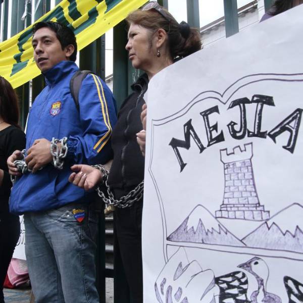 Hoy, los padres de los estudiantes del colegio Mejía marcharon desde las oficinas del Colegio de Abogados de Pichincha e ingresaron a la institución educativa para pedir que sus hijos sean reintegrados a las aulas. Los estudiantes fueron sentenciados a prisión por los desmanes ocasionados en las protestas del pasado 18 de septiembre