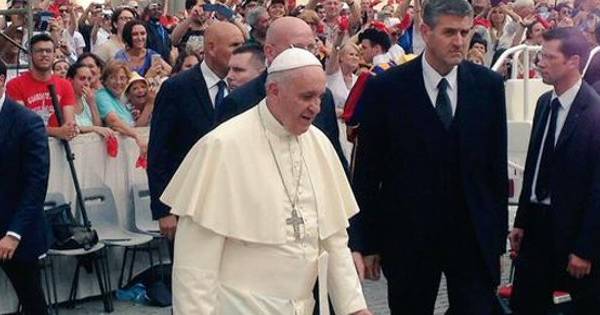 Casi hacia el final llegó el papa Francisco, hizo su entrada habitual como ocurre cuando hay audiencia.