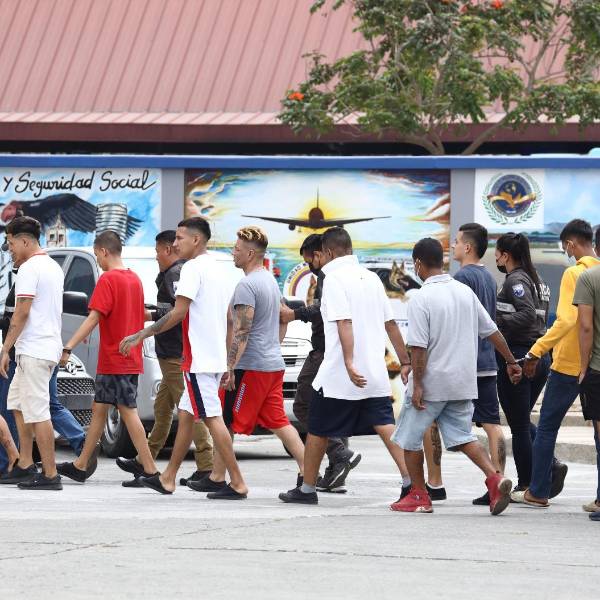Imagen de personas detenidas, trasladadas al Cuartel Modelo de Guayaquil, tras un operativo contra el grupo terrorista Chone Killers en 2022.