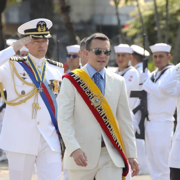 El presidente Daniel Noboa en la ceremonia y desfile por el 83 aniversario del Combate Naval de Jambelí.( )