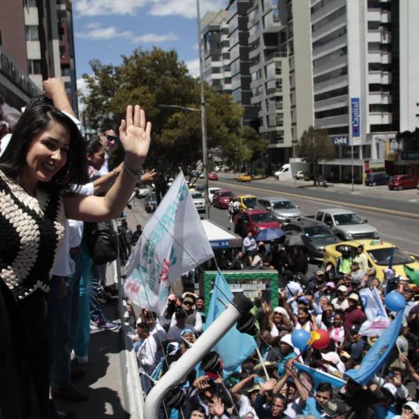 Luisa González volvió a enfatizar que está abierta al diálogo con otros movimientos. En los exteriores, un grupo de simpatizantes se congregó en la avenida 6 de Diciembre para expresarle su respaldo.