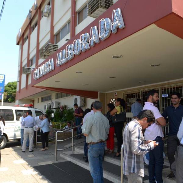 Familiares del abogado Llerana esperaban información sobre su estado en los exteriores de una clínica en Guayaquil. Foto: API
