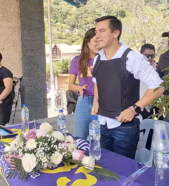 Tras su paso por Imbabura, Daniel Noboa llegó a Tungurahua. Aunque tenía previsto visitar los cantones de Píllaro, Patate y Baños, por seguridad, centró su agenda solo en Baños.