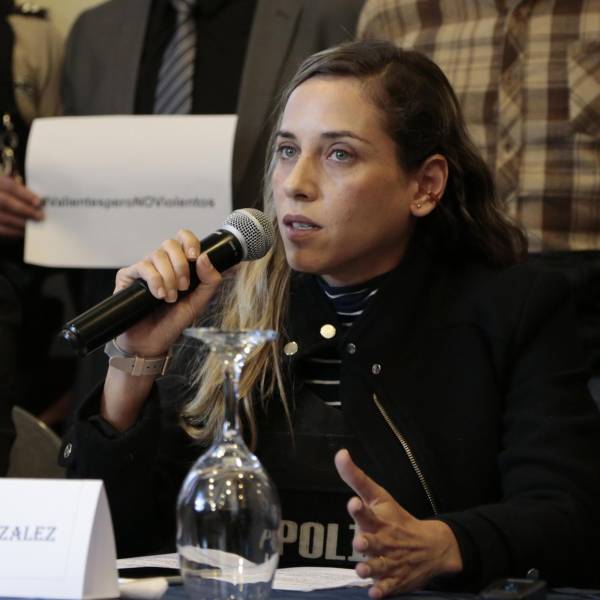 La ambientalista y política Andrea González durante una rueda de prensa tras la muerte de Villavicencio. ( )