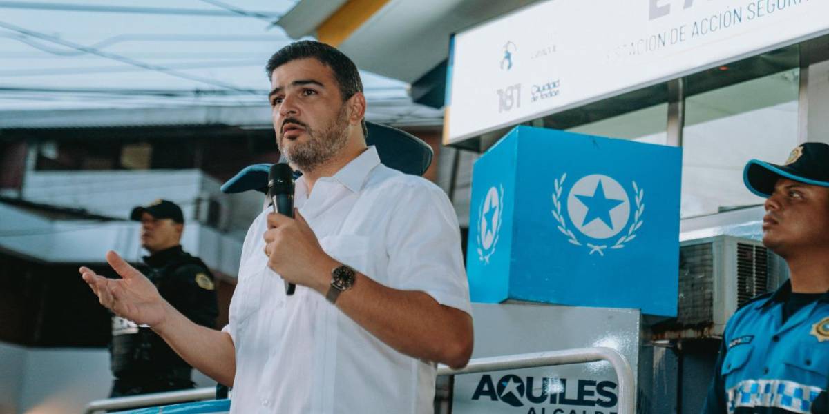 Imagen de Aquiles Álvarez, alcalde de Guayaquil, inaugurando una Estación de Acción Segura en Lomas de Urdesa, norte de Guayaquil.( )