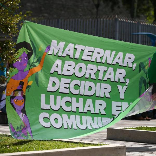 Manifestantes a favor del aborto se congregan en los exteriores de la Asamblea Nacional.( )