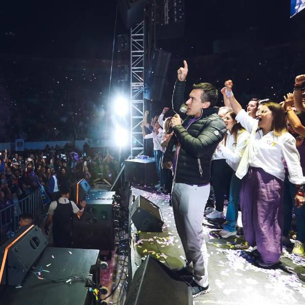 Daniel Noboa durante el cierre de campaña electoral en Quito.( )