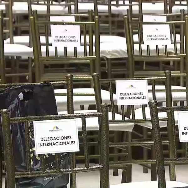 Mientras tanto, en el salón plenario Nela Martínez, el equipo de protocolo de la Asamblea ha dejado listas las mil sillas Tiffany perfectamente ubicadas y etiquetadas.