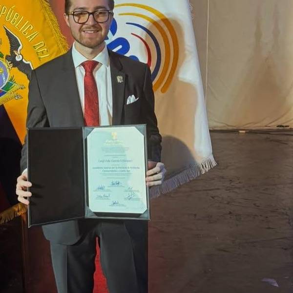 Luigi García cuando recibió las credenciales de asambleísta por Pichincha para el periodo 2025-2029.( )