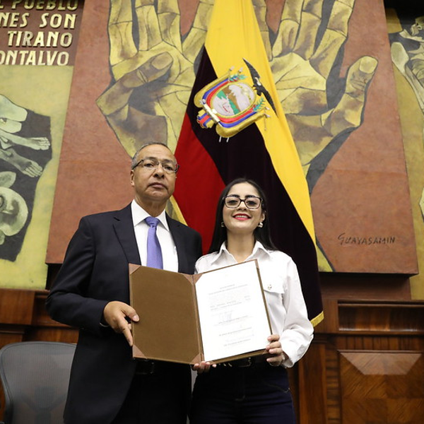 El vocal Benavides junto a Viviana Veloz, presidenta encargada del Legislativo. ( )