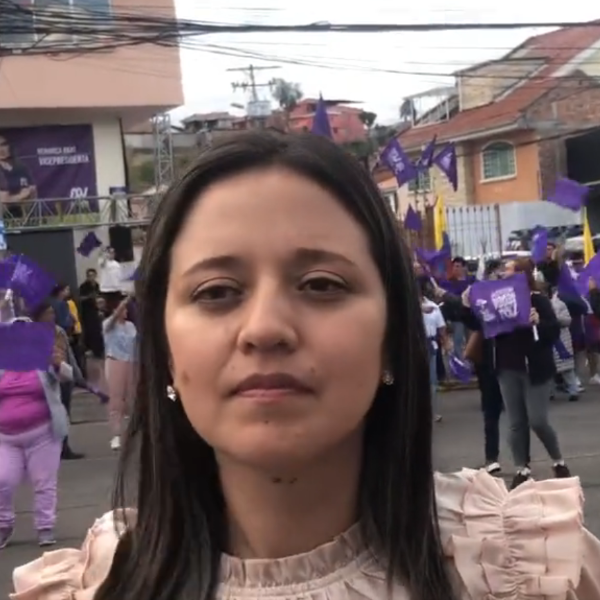 Imagen de Fernanda Robles durante la anterior campaña electoral, en 2023. ( )