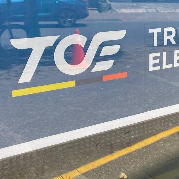 El logo del TCE en la puerta de esa entidad, en las calles Robles y Juan León Mera, en Quito.( )