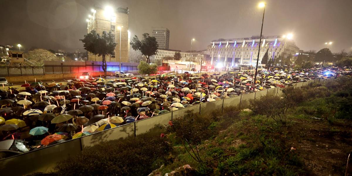 Israelíes marchan para protestar por la reanudación de los combates en Gaza y en contra de los planes anunciados del primer ministro israelí Netanyahu de destituir al jefe del Shin Bet, Ronen Bar.( )