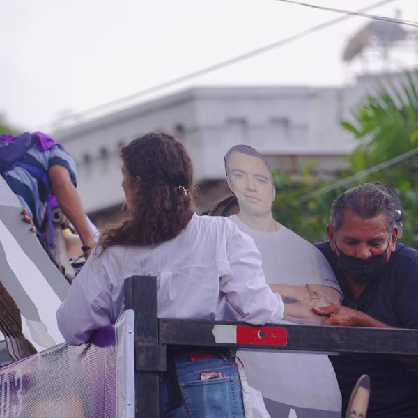 Al mediodía el ambiente electoral ya se sentía en la ciudadela Ferroviaria, en el oeste de la ciudad. Simpatizantes del movimiento oficialista Acción Democrática Nacional (ADN) con banderas esperaban a su candidato Daniel Noboa que participará en una caravana hasta el sur de la ciudad, luego se irá al cantón Naranjal y por la noche estará en Quito.