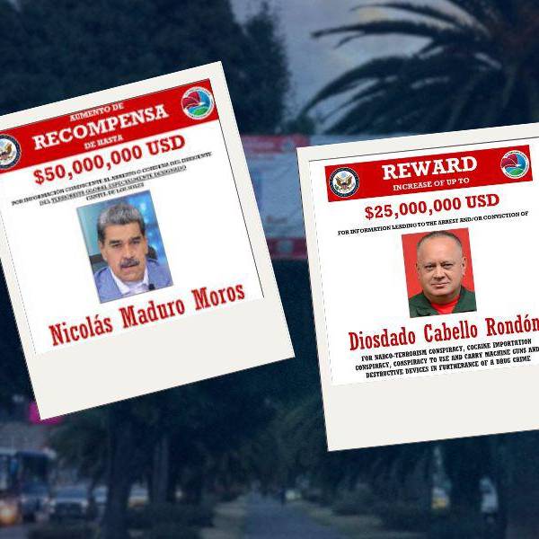 La tarde del lunes 25 de agosto de 2025, se pudo observar en la Avenida Naciones Unidas una pancarta con la imagen del dictador Nicolás Maduro y otros miembros del régimen venezolano, por los cuales el gobierno de Estados Unidos ofrece una recompensa a quien brinde información que sirva para dar con su captura.
