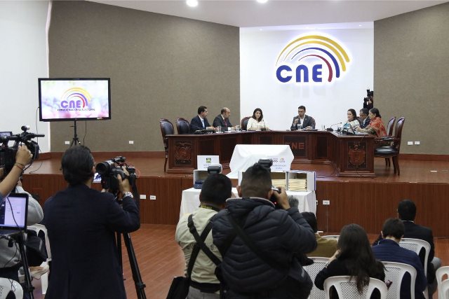 El organismo electoral hizo un repaso del proceso de verificación de actas realizado el 12 de abril, en el que se decidió dar paso al reconteo voto a voto al 100% de las actas objetadas, tanto por CREO-SUMA como por Alianza PAIS, y que representan el 1'275.450 de los votos, según el CNE.