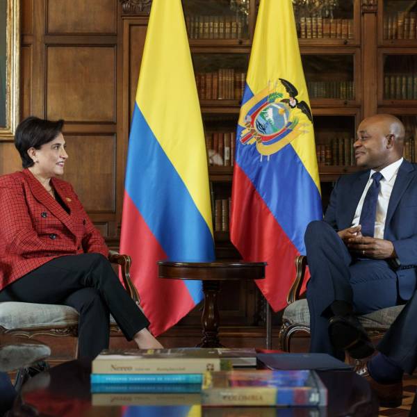 Ambos cancilleres se reunieron en el Palacio San Carlos, sede de la Cancillería, para conversar sobre "la importancia de impulsar una agenda binacional potente que impulse la integración para que, en conjunto Colombia y ecuador, tengan mayor competitividad y visibilidad en la región y en el mundo", según detalló el Gobierno colombiano.