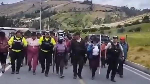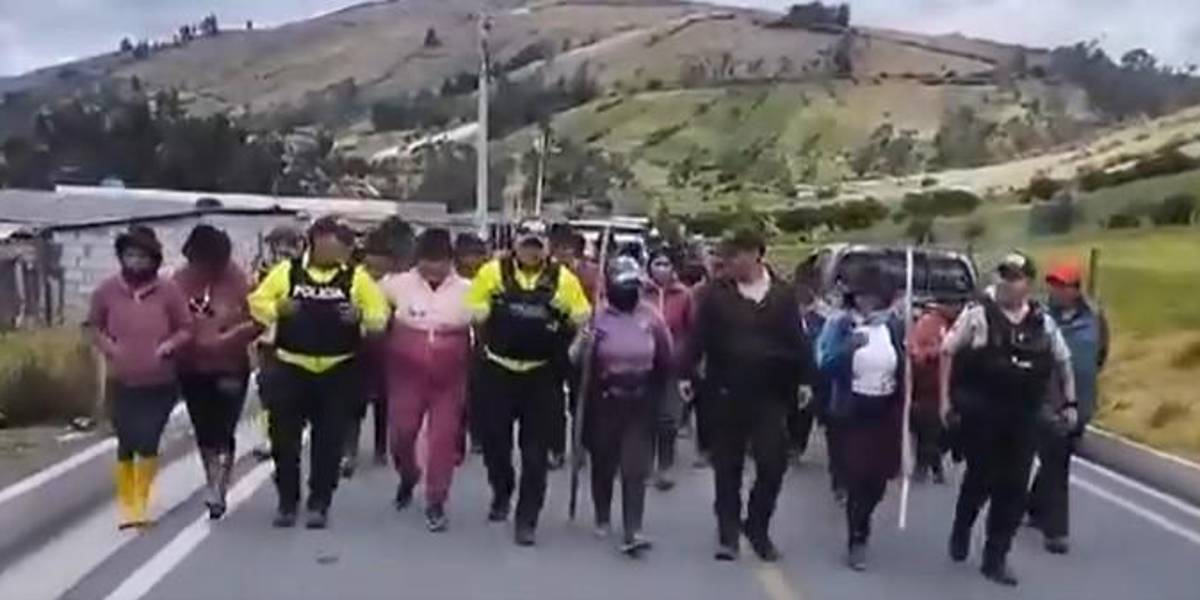 En un video compartido en redes sociales por el Movimiento Indígena de Cotopaxi (MIC), la comunidad demostró el rechazo a la presencia policial. Armados con palos, los ciudadanos escoltaron a los uniformados hasta la casa comunal de la comunidad, ubicada a 40 kilómetros de Latacunga. Se trató de una medida de advertencia, con la condición "de que no vuelvan".