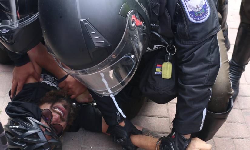 La Policía tuvo que intervenir y en una confusión terminaron sometiendo en el piso al concursante Santiago Ochoa.
