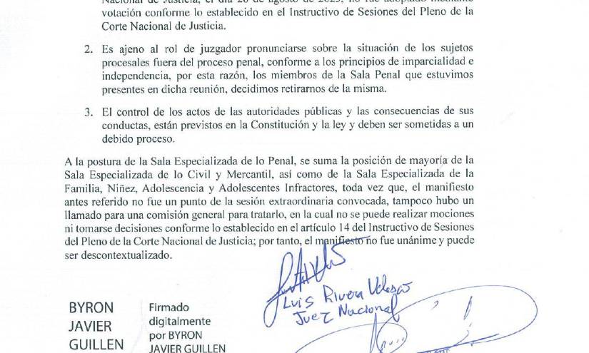 Sin embargo, cinco magistrados de tres salas especializadas de la CNJ, Penal, Civil y de la Niñez desmienten que la resolución haya sido aprobada por unanimidad, es más, señalan que "no fue adoptado mediante votación".