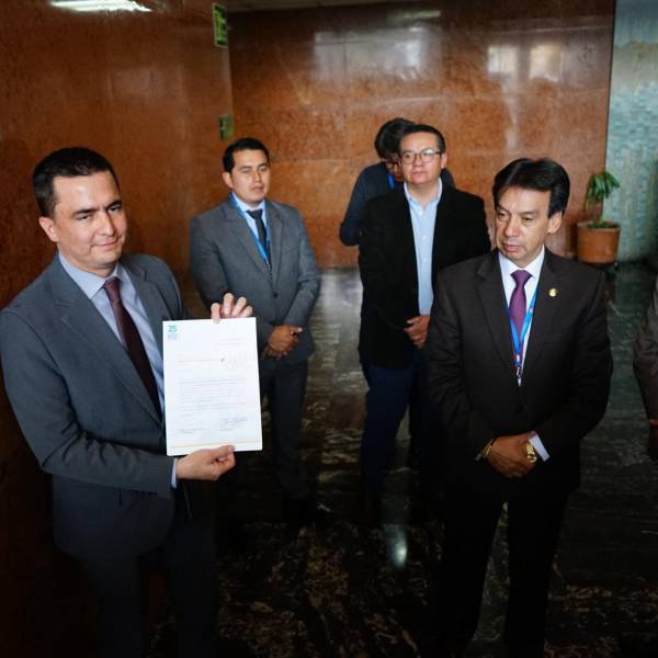 Los asambleístas de Construye, Jorge Peñafiel y Camilo Salinas, presentaron este viernes 27 de diciembre una solicitud de juicio político en contra de Mario Godoy, presidente del Consejo de la Judicatura.