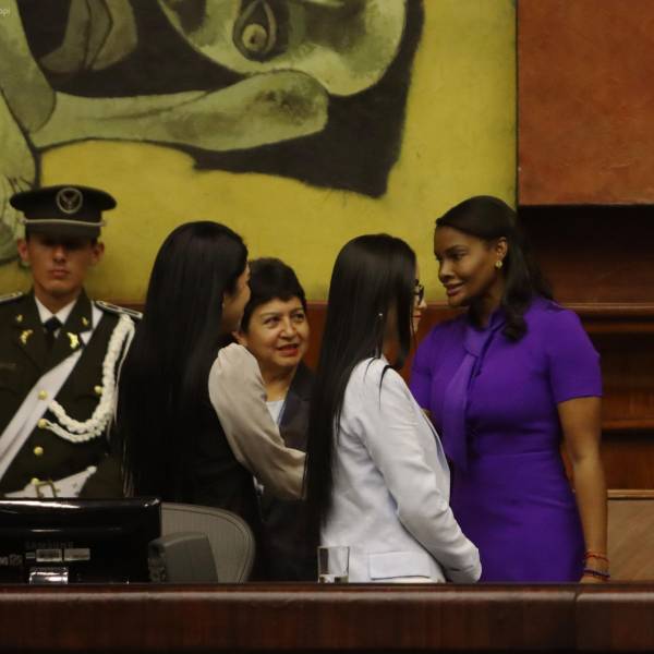 Diana Salazar en el Pleno de la Asamblea Nacional el 25 de enero del 2024. En el medio, Viviana Veloz del correísmo.( )