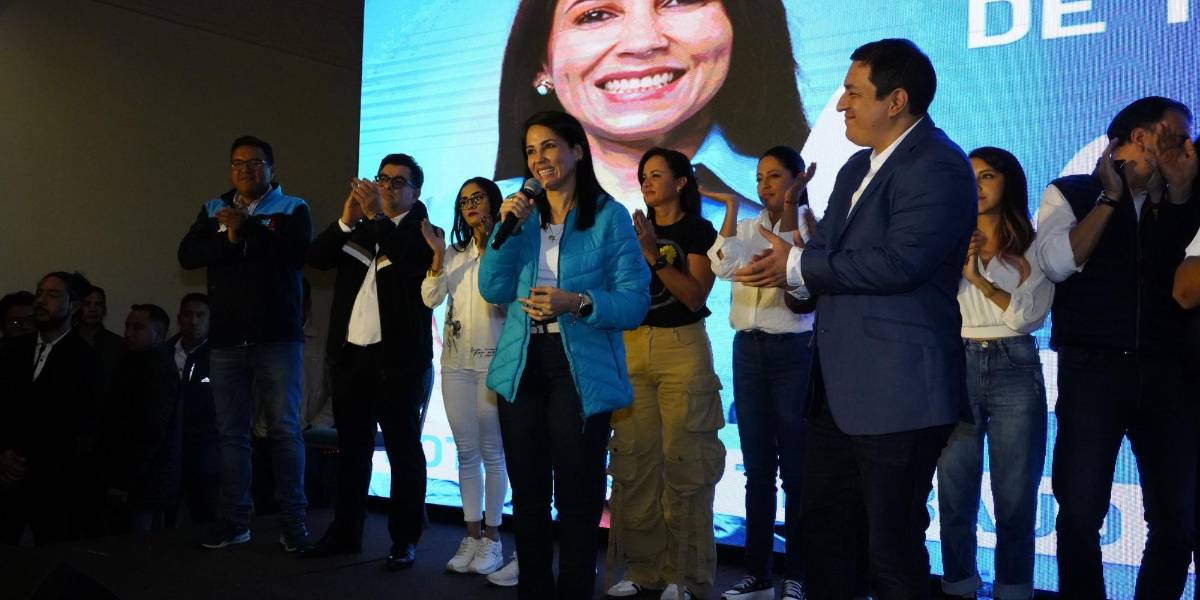 Luisa González y Andrés Arauz en la recepción de resultados.( )