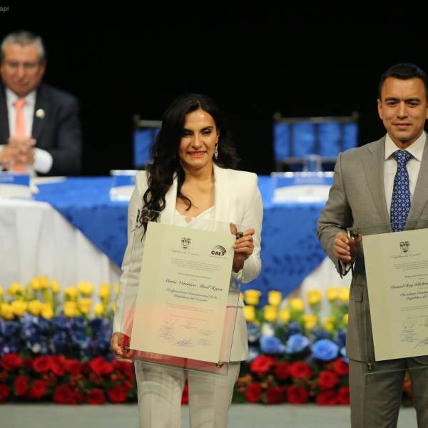Quito 15 de noviembre. Entrega de credenciales al presidente Daniel. Noboa y vicepresidenta Verónica Abad, en el teatro Sucre API/Julio Estrella( )