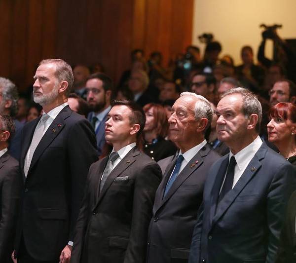 De izquierda a derecha: el rey Felipe VI de España; el presidente de Portugal,( )
