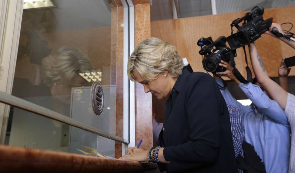 QUITO, Ecuador.- La candidata presidencial presentó hoy su renuncia a la Asamblea para dedicarse a su campaña. Foto: API