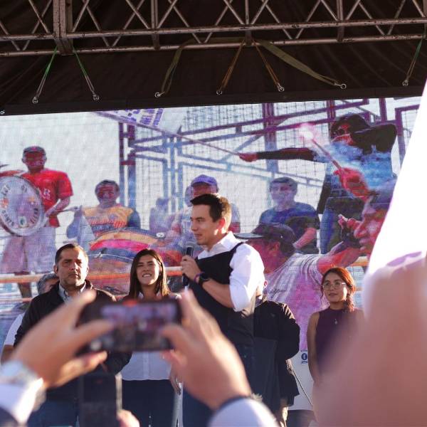 Noboa realiza su campaña en territorio en medio de estrictas medidas de seguridad y usando un chaleco antibalas, tal como lo hace su contendiente, Luisa González.