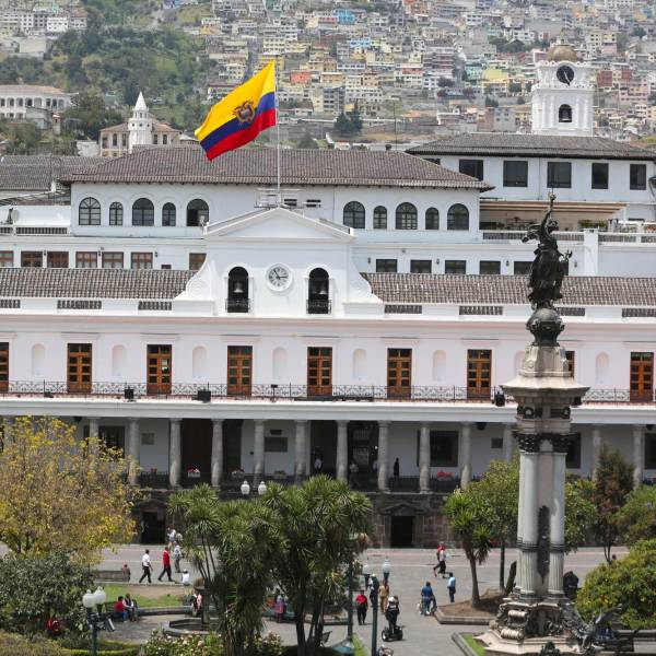 La fachada del Palacio de Gobierno en el Centro Histórico de Quito. ( )