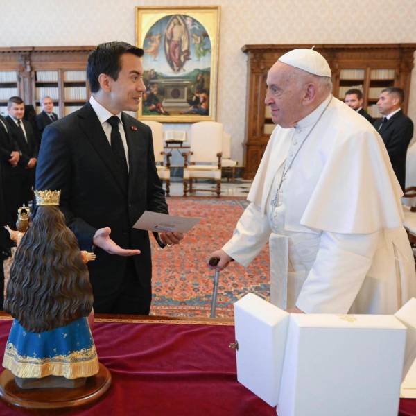 El papa recibió a Noboa en una audiencia privada, en el marco de una gira internacional del mandatario que le llevará a Italia, Francia y España, además del Vaticano.