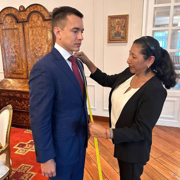 Tras el encuentro con Lasso, Noboa fue recibido por Rosa Muñoz, la costurera del Palacio de Carondelet, quien le tomó las medidas para iniciar la confección de la banda presidencial.