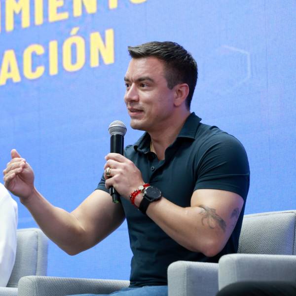 Daniel Noboa en un conversatorio sobre educación en Guayaquil el 24 de marzo de 2025( )