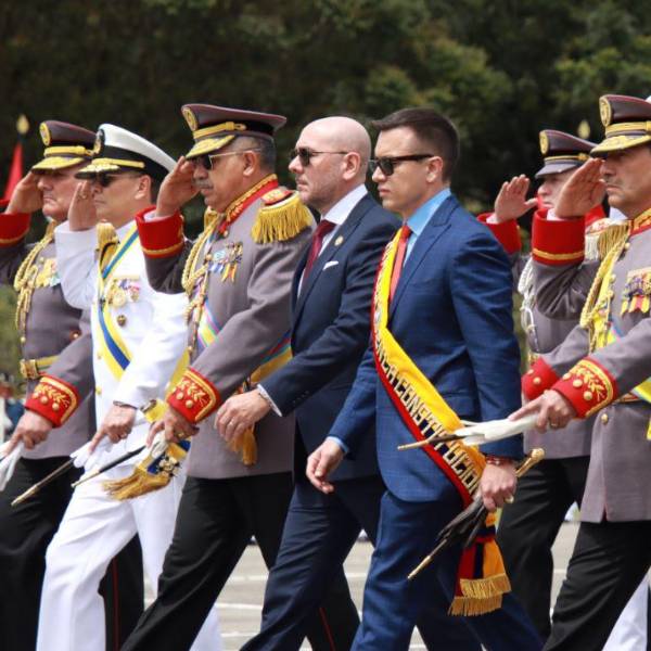 Ofreció un discurso de poco más de tres minutos para mostrar su respaldo a los militares. "Hoy más que nunca, el Ecuador necesita líderes que actúen con firmeza ante el terrorismo y el narcotráfico", en referencia a los nuevos mandos militares.