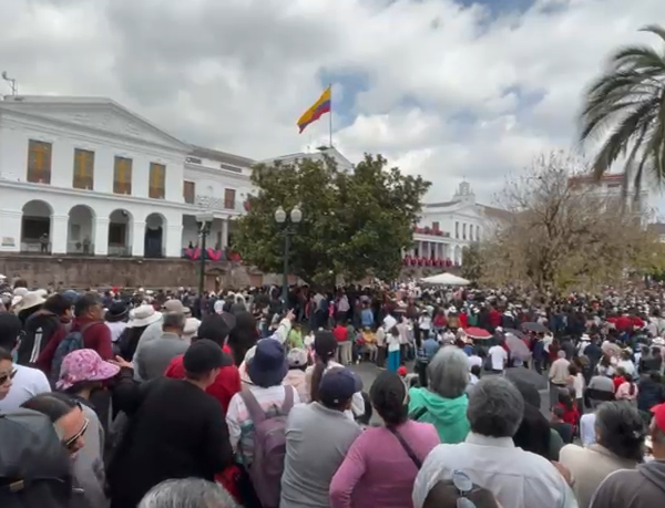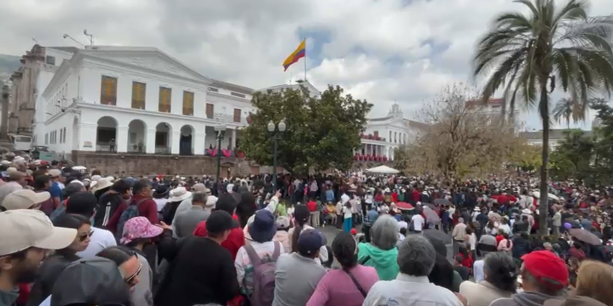 Este 2 de diciembre de 2025, decenas de personas acuden a la Plaza de la Independencia, en el centro de Quito, a propósito de una convocatoria del gobierno de Daniel Noboa, con el fin de que el Presidente tenga su propia Serenata Quiteña, en el marco de la celebración por los 491 años de la Fundación, sin la presencia del alcalde de Quito, Pabel Muñoz.