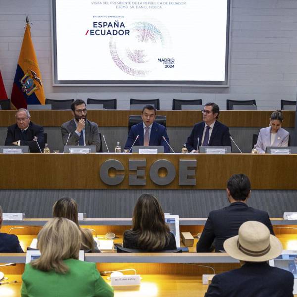 Noboa, que participó este jueves en un encuentro empresarial en la sede de la patronal española (CEOE), dijo que, aunque al inicio de su mandato estaba "enfocado en la generación de empleo", "tuvimos que adaptarnos". Ahora el reto es "generar empleo en una zona de alto conflicto".