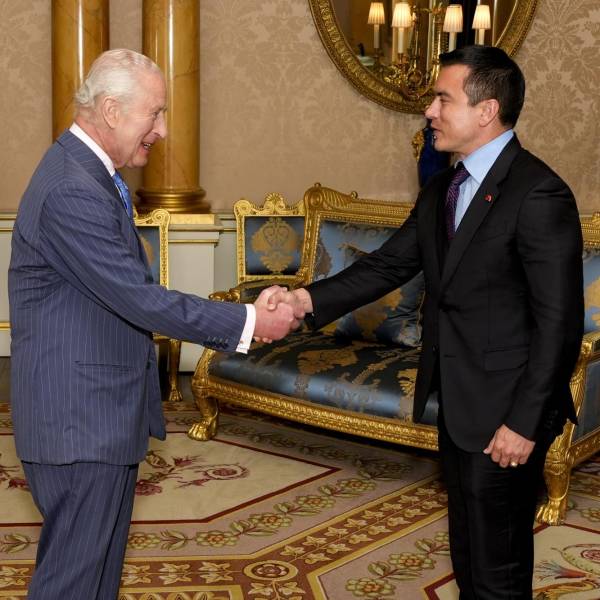 "El Presidente de la República del Ecuador visitó al Rey en el Palacio de Buckingham esta tarde. La Primera Dama también estuvo presente", indicó la cuenta oficial del Palacio de Buckingham.