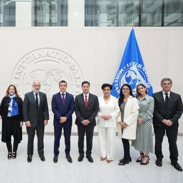 El presidente electo Daniel Noboa Azín matuvo una reunión con altos emisarios del Fondo Monetario Internacional (FMI). El objetivo fue establecer alianzas para lograr apoyo financiero e incrementar el comercio exterior del país.