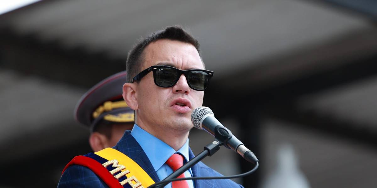 El presidente Daniel Noboa en un evento castrense en Quito.( )